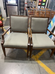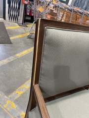 As of this writing we have two of these chairs. One has some slight damage. These are wide chairs. They measure 38 inches tall, 27.25 inches wide, and 31 inches deep. All items are eligible for a full refund before they leave the store.