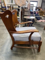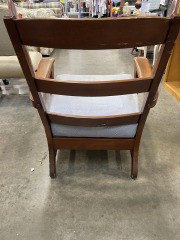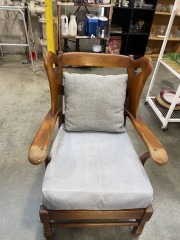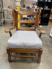 This chair measures 34.5 inches tall, 26.5 inches wide, and 32 inches deep. All items purchased online are eligible for a full refund before they leave the store.