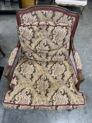This chair measures 35 inches tall, 29 inches wide, and 32 inches deep. All items purchased online are eligible for a full refund before they leave the store.