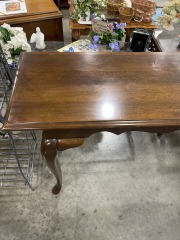 This table measures 29.5 inches tall, 52 inches wide, and 16 inches deep. All items purchased online are eligible for a full refund before they leave the store.