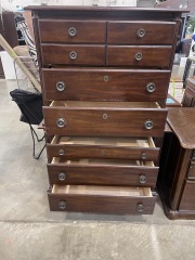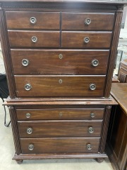 This big chest of drawers has a lot of storage potential. It measures 62.5 inches tall, 41 inches wide, and 19.5 inches deep. All items purchased online are eligible for a full refund before they leave the store.