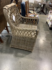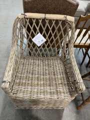 This armchair is brand new. It retails for $302 at other stores. It measures 37 inches tall, 26.5 inches wide, and 27.5 inches deep. All items purchased online are eligible for a full refund before they leave the store.