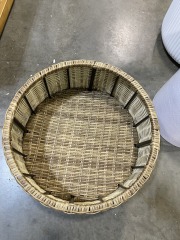 This brand new item offers stylish serving and storage. This would sell for $301 at other stores. It is 14 inches tall, and 25.75 inches across. All items purchased online are eligible for a full refund before they leave the store.