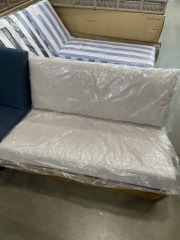 This brand new sofa sells at other places for $427. It measures 29 inches tall, 44.75 inches wide, and 34.5 inches deep. All items purchased online are eligible for a full refund before they leave the store.
