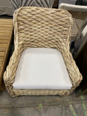 This brand new chair is priced well. Elsewhere it would sell for $435. It measures 32.5 inches tall, 25 inches wide, and 26 inches deep. All items purchased online are eligible for a full refund before they leave the store.