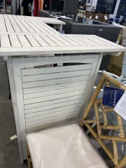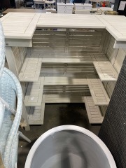 This was just unpacked and it is brand new. This retails elsewhere for $334. It measures 42.5 inches tall, 46 inches wide, and 27.25. All items purchased online are eligible for a full refund before they leave the store.