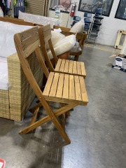 These are brand new chairs. As I write this we have two. They measure 31 inches tall, 14.75 inches wide, and 19 inches deep. All items purchased online are eligible for a full refund before they leave the store.