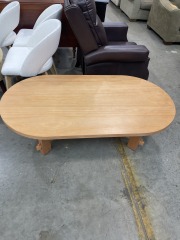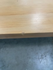 This new table was damaged at some point before it was sold. It has a tiny tiny gouge. It measures 16.25 inches tall, 60 inches wide, and 32 inches deep. All items purchased online are eligible for a full refund before they leave the store.