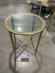 This is a brand new very sturdy glass table. It retails elsewhere for over $300. It measures 15 inches tall, 40 inches wide, and 30 inches deep. All items purchased online are eligible for a full refund before they leave the store.